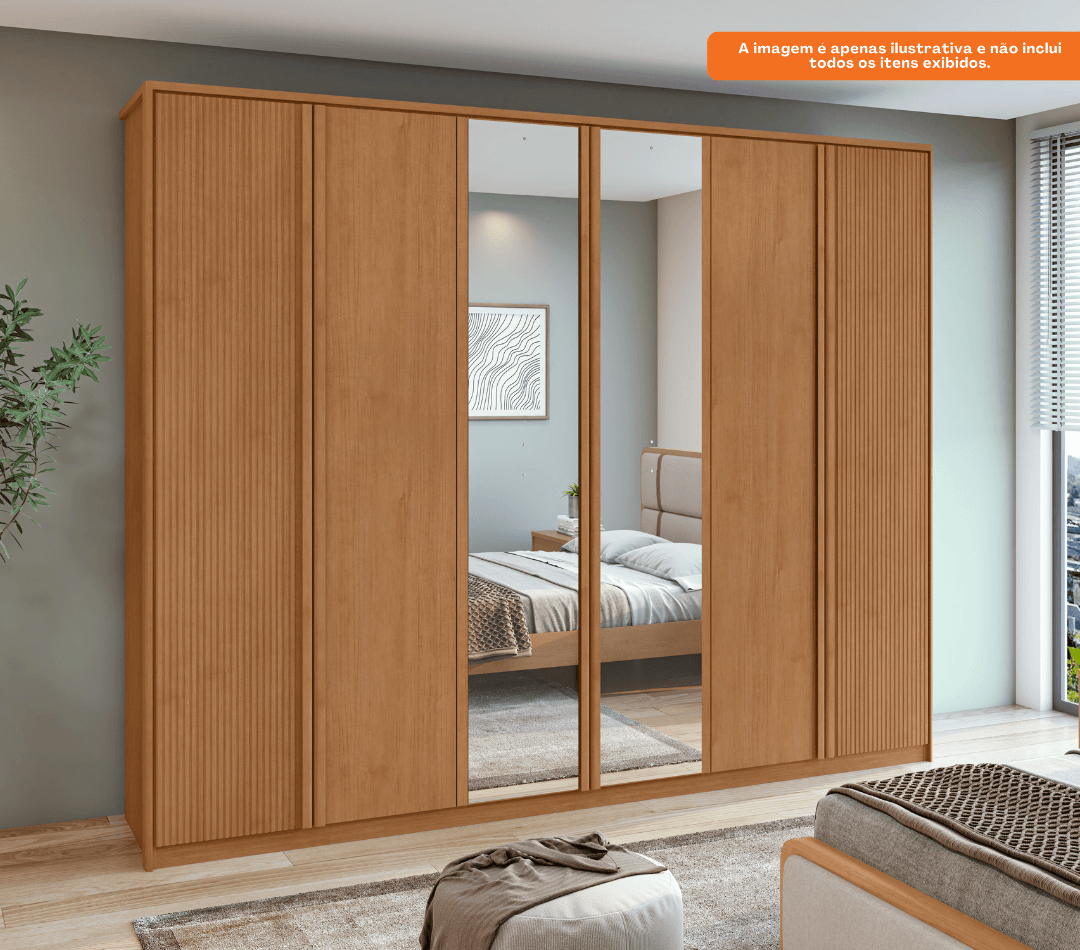 Roupeiro Ollie III Lopas 274cm 100% MDF 6 Portas com Espelho