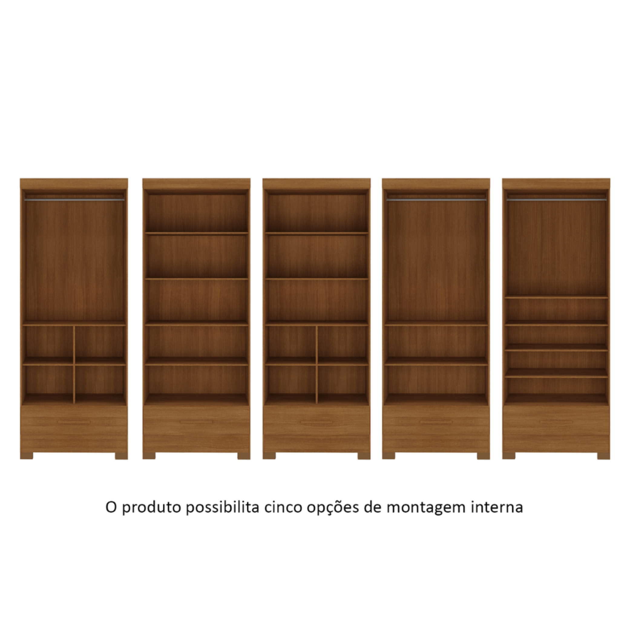 - Armazenamento Inteligente: Possui cabideiro resistente e prateleiras internas bem distribuídas.