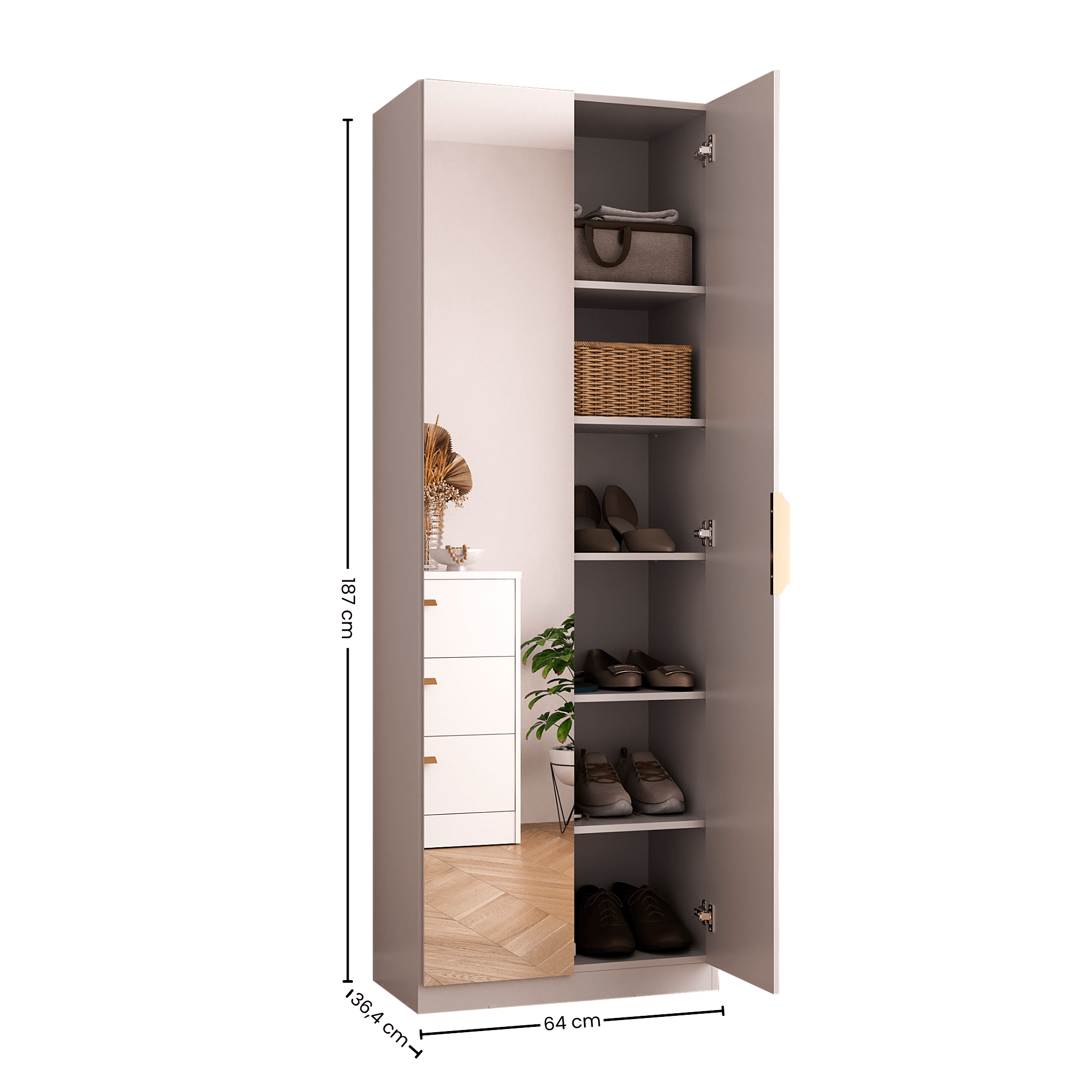 Sapateira Sublime Mambel 64x187 com 2 Portas de Espelho