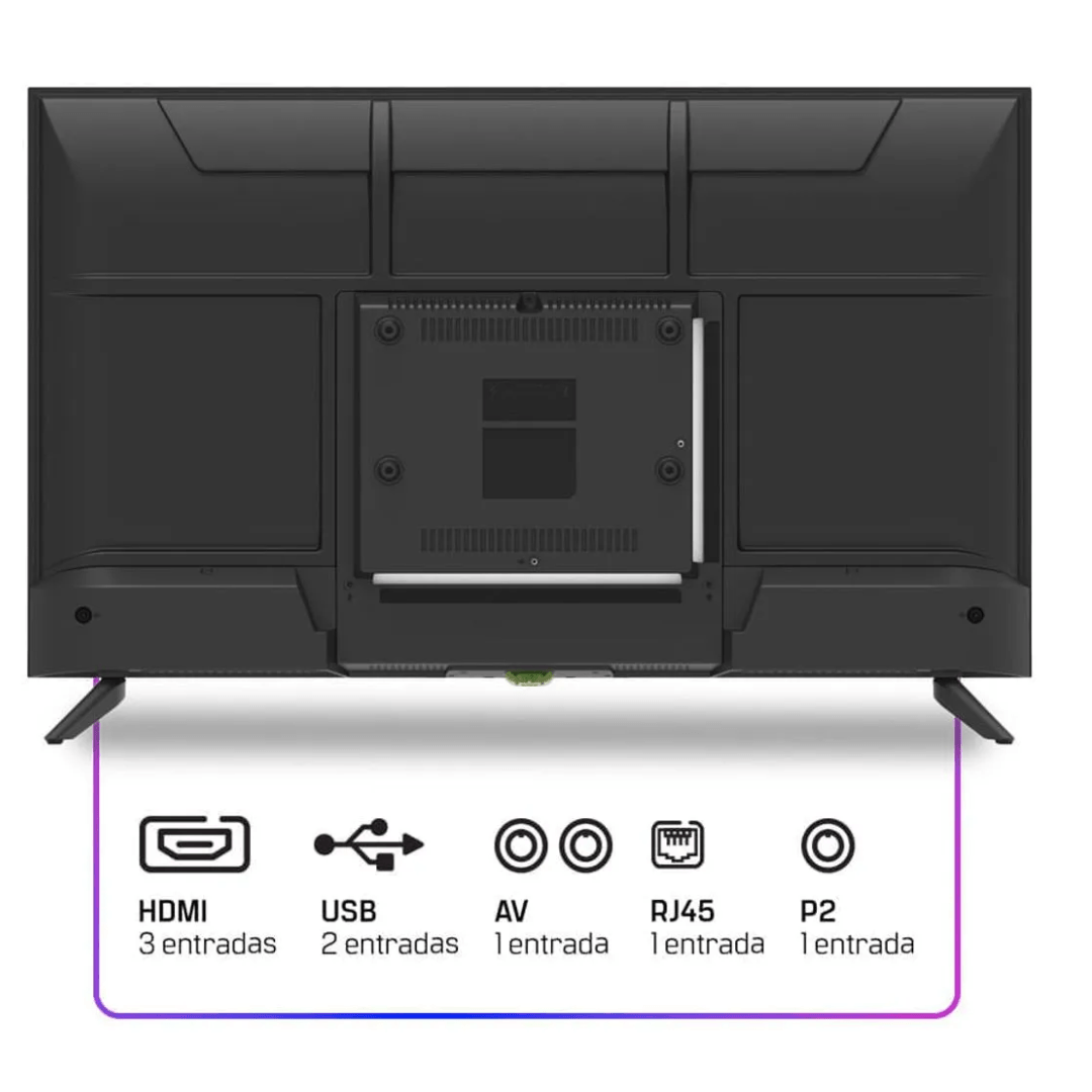 - Tela de 32” HD (1366 x 768): imagens nítidas e cores vibrantes.