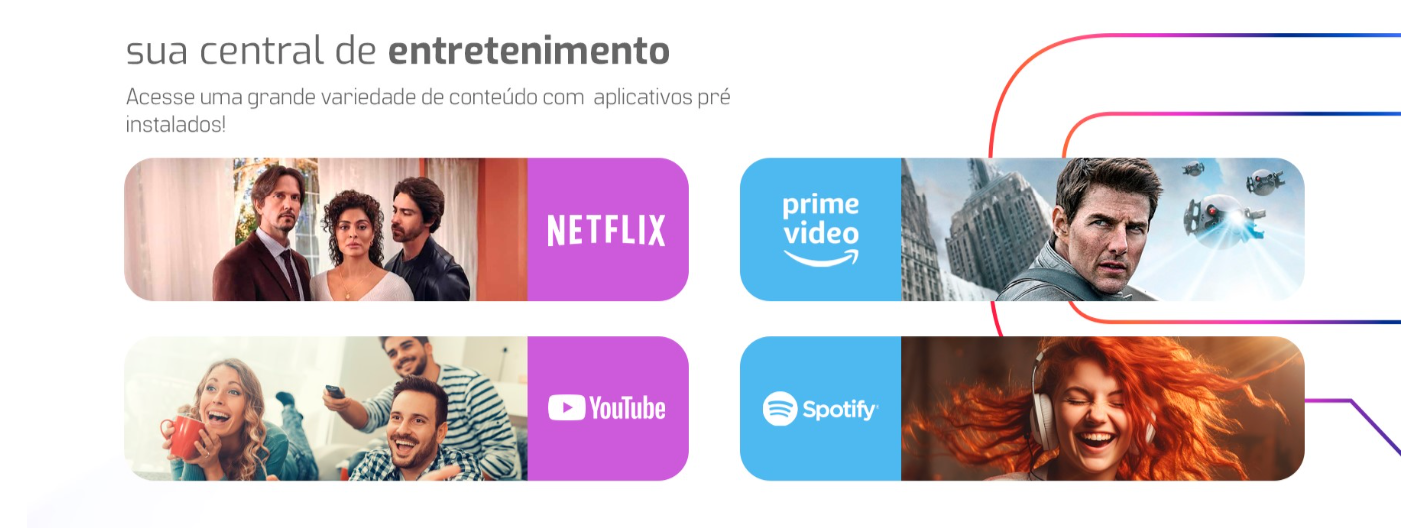 Sistema Android 12 – Seus apps favoritos na tela grande, a TV vem equipada com Android 12, oferecendo navegação fluida, interface intuitiva e acesso direto a aplicativos como Netflix, YouTube, Prime Video, Disney+, Spotify e muito mais. Além disso, conta com função de espelhamento de tela para transmitir conteúdos do seu celular Android ou iOS com apenas um toque.