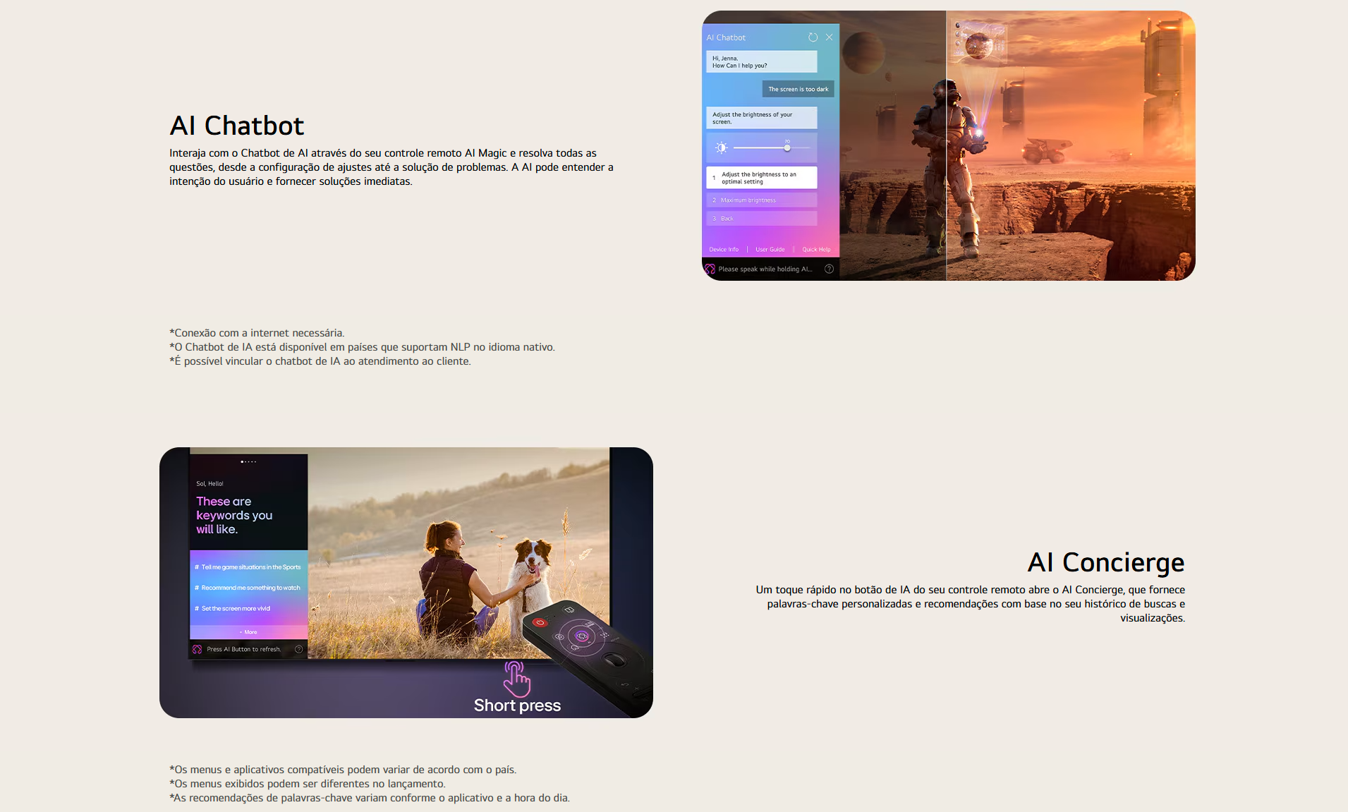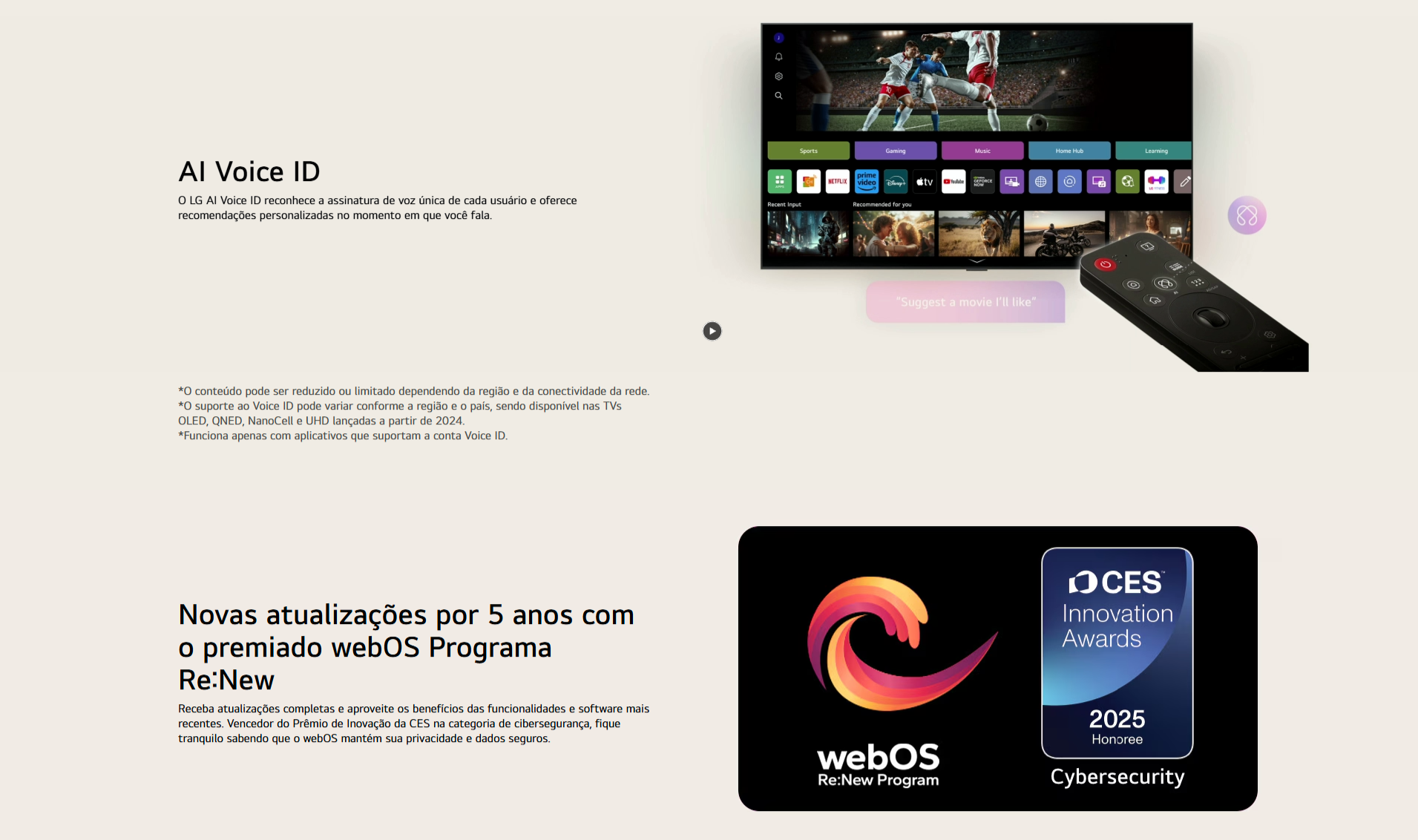 - webOS 25 + AI Magic Remote: navegação fluida com controle por voz e recursos inteligentes