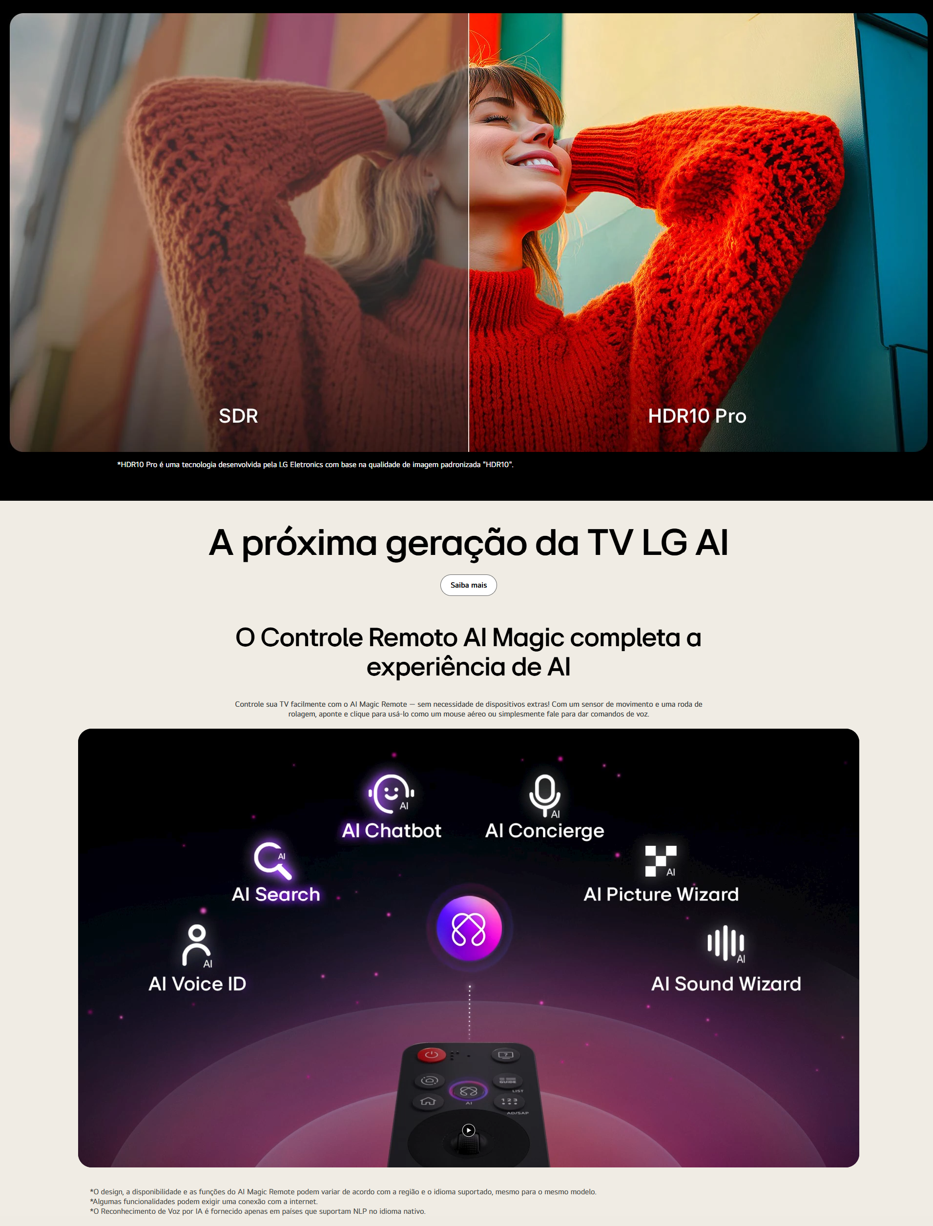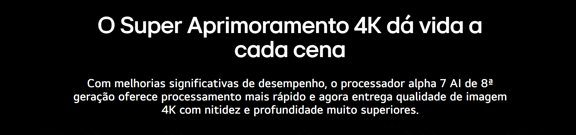 - Imagem 4K HDR10 Pro + Super Upscaling: qualidade superior mesmo em conteúdos de menor resolução