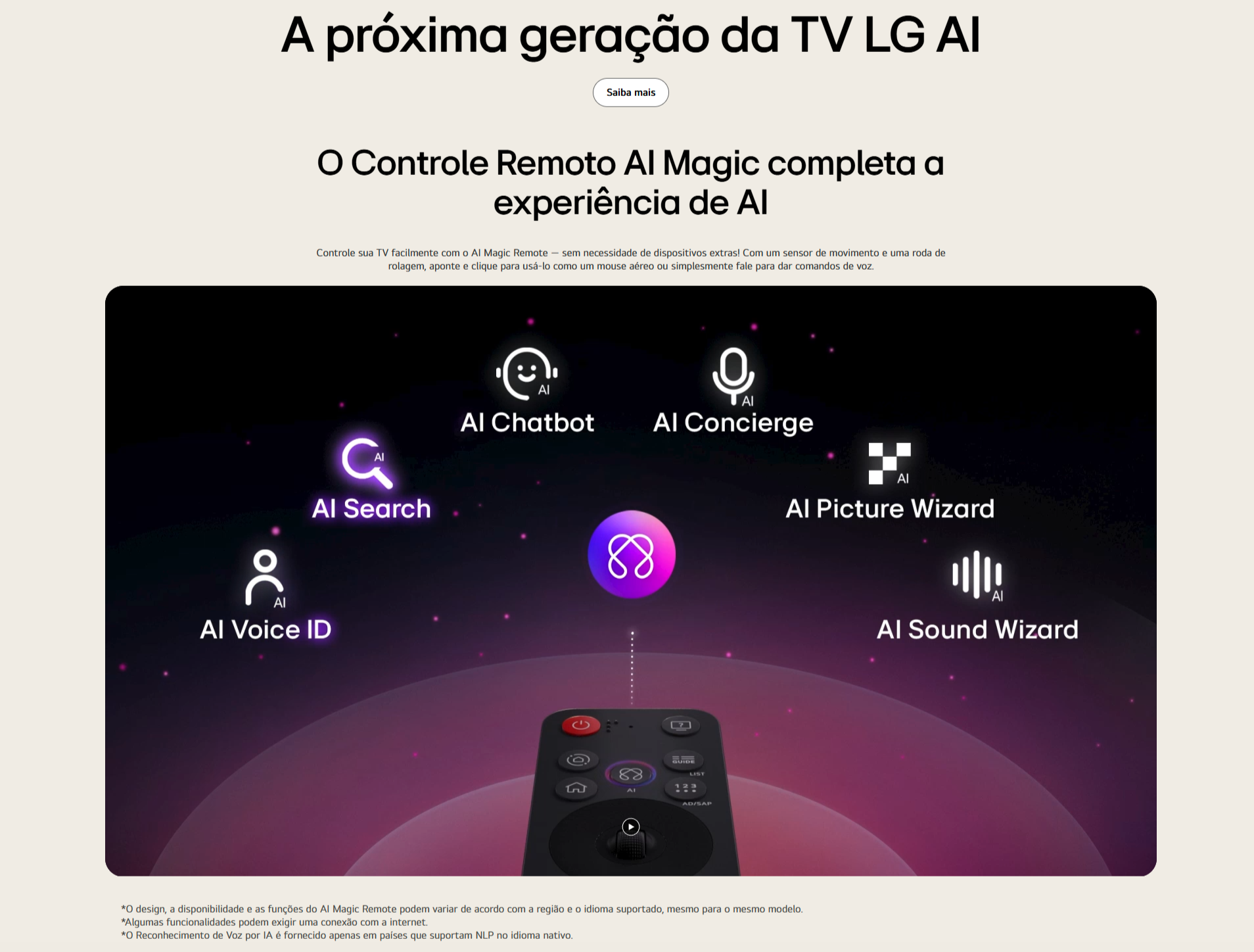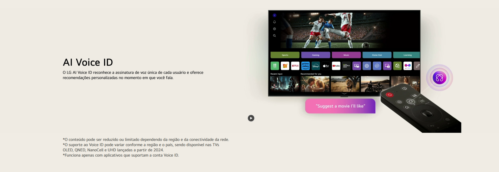 - webOS 25 + AI Magic Remote: navegação fluida com controle por voz e recursos inteligentes