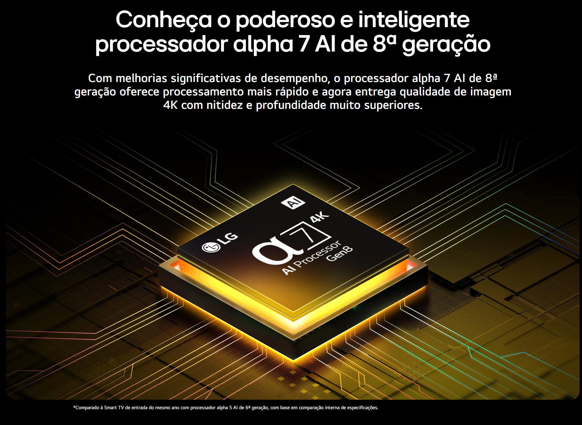 - Processador a7 AI Gen8: inteligência artificial que otimiza imagem e áudio em tempo real