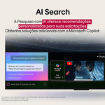 A navegação torna-se prática e intuitiva com o sistema webOS 25, que oferece acesso facilitado aos principais aplicativos e conteúdos. O AI Magic Remote complementa essa experiência com comandos de voz, rolagem precisa e interação inteligente com assistentes virtuais como Alexa e Google Assistente.
