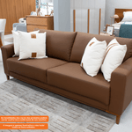 O Sofá Living Nilo combina design elegante com durabilidade. Sua estrutura é feita de madeira de reflorestamento (pinus, eucalipto e MDF), tratada para resistir a mofos, cupins e outros microrganismos. A sustentação do assento e do encosto conta com cintas elásticas de alta resistência, garantindo conforto prolongado. O encosto fixo possui almofadas preenchidas com fibras e flocos, revestidas com kami e manta acrílica para maior maciez. O assento utiliza espuma D26 com camada de manta acrílica, proporcionando firmeza e aconchego, enquanto os braços são confeccionados com espuma D20 e os adornos com D16. O acabamento inferior também em kami reforça o visual sofisticado. Os pés de madeira tingida completam o charme e a elegância deste modelo.