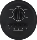 Esse modelo possui direcionadores de ar horizontais, garantindo uma ventilação uniforme e agradável. Equipado com timer, ele permite configurar o tempo de funcionamento para maior praticidade e economia de energia. Embora não conte com painel digital ou controle remoto, seu uso é intuitivo e eficiente.